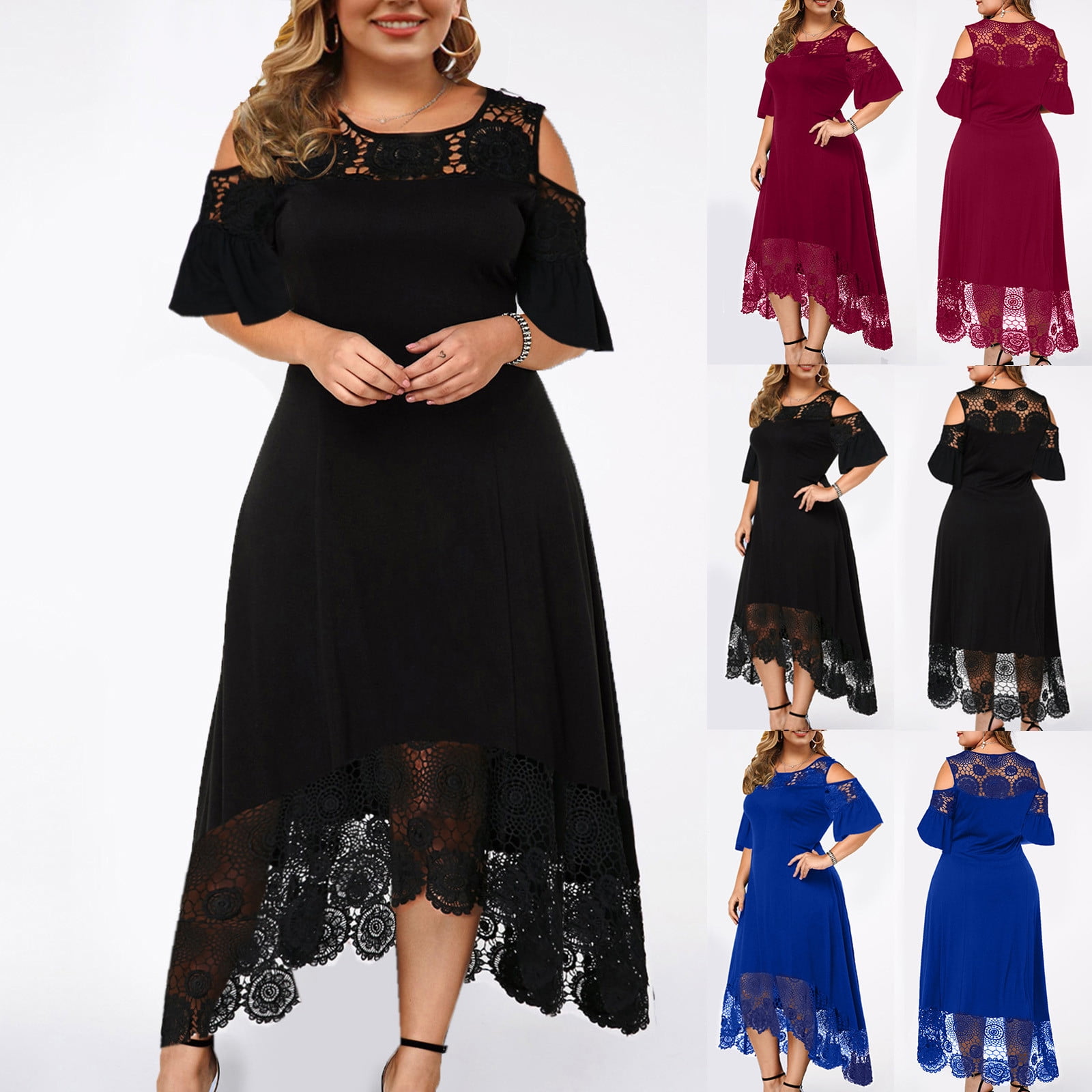 Women Midi Plus Size Short Sleeve Dress Simple Casual Solid Homecoming Dresses For Wedding Guest Walmart Com